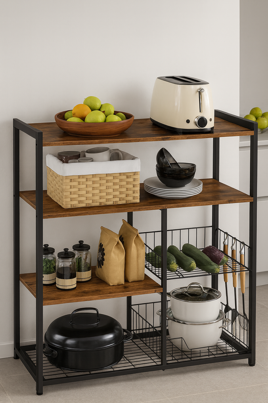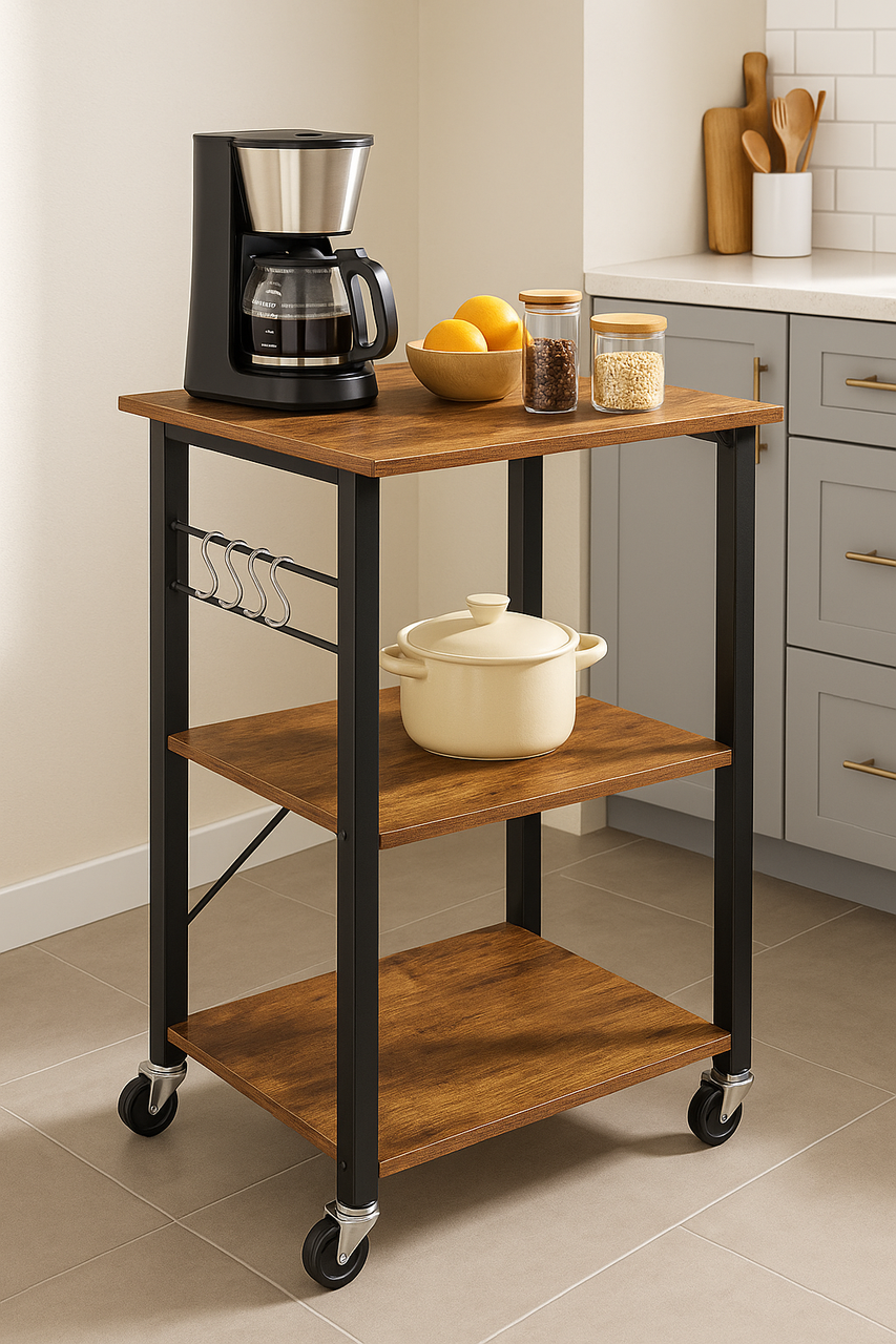 Уявіть собі меблі, які не тільки слугують вашій зручності, але й перетворює кожен куточок вашого будинку на витвір мистецтва. Стелаж Leobert Dash на колесах у стилі Loft — це не просто меблі, а чудове рішення для вашої кухні, що поєднує елегантність і практичність. Його дизайн, натхненний індустріальним стилем, вносить в інтер'єр кухні особливий характер і шарм. Завдяки зручним колесам,