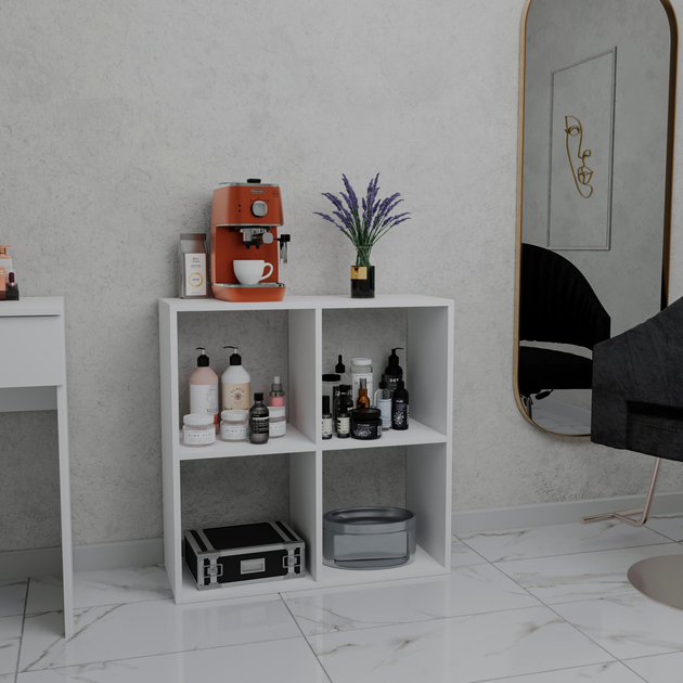 Стелаж 72,6х72 для іграшок чорний, книжкова полиця, чорна тумба на 4 відділи, квадратна етажерка БІЛИЙ