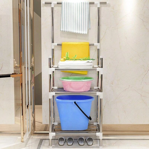 Складаний відкритий стелаж з полицями - етажерка в ванну кімнату