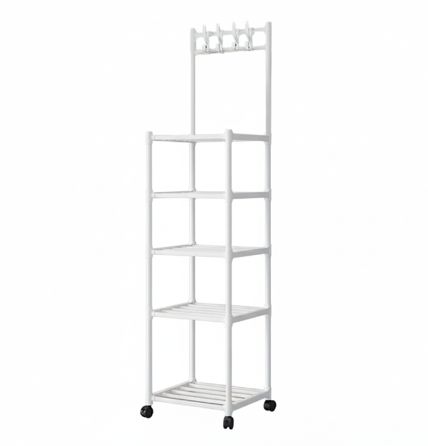 Кухонний стелаж 5 рівнів з гачками і колесами 152 см білий