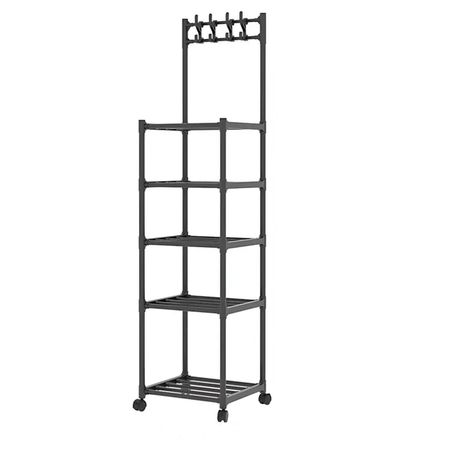 Кухонний стелаж 5 рівнів чорний метал 152 см з гачками і колесами