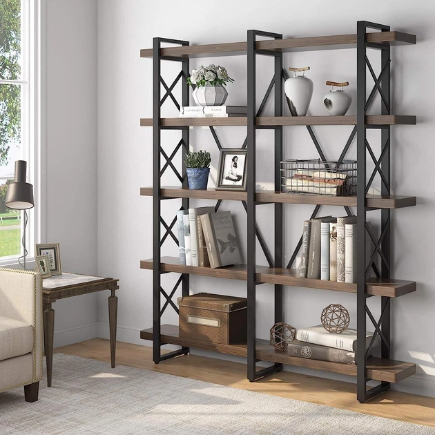 Дизайнерський Стелаж в стилі Loft Design 180x40x180h Чорний/Дерево ATL035