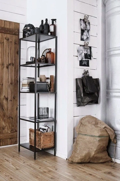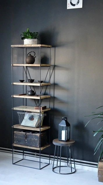 Дизайнерський Стелаж в стилі Loft Design 60x30x160h Чорний/Дерево ATL444