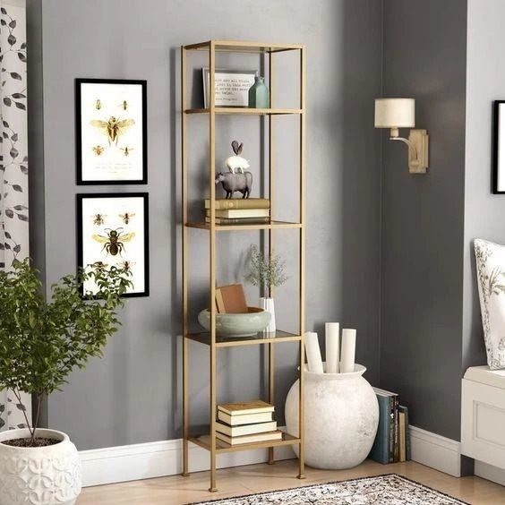 Дизайнерський Стелаж в стилі Loft Design 500x30x170h Золотий/Скло ATL755