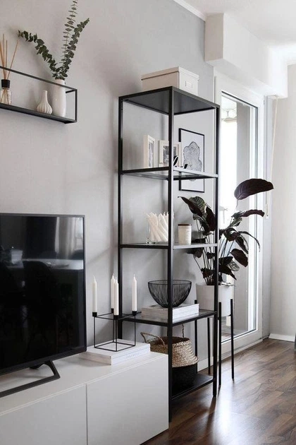 Дизайнерський Стелаж в стилі Loft Design 500x40x210h Чорний/Скло ATL445