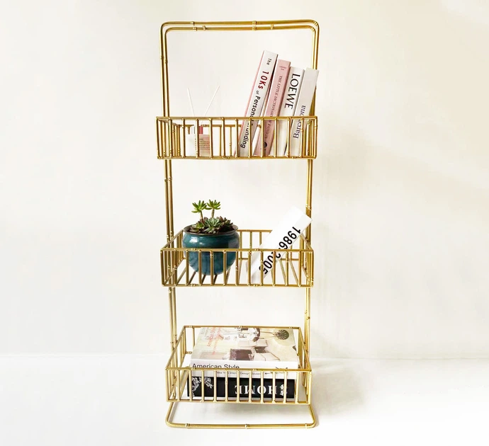 Декоративний стелаж на 3 полиці із золотистого металу Гранд Презент 60688