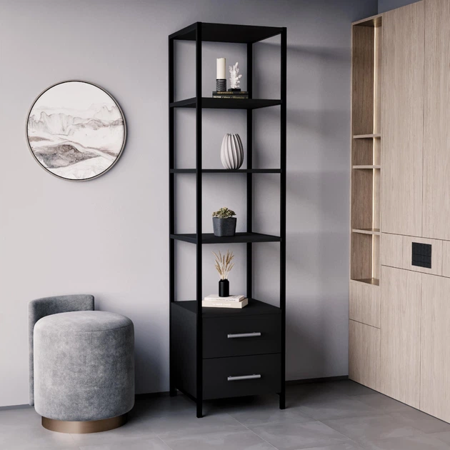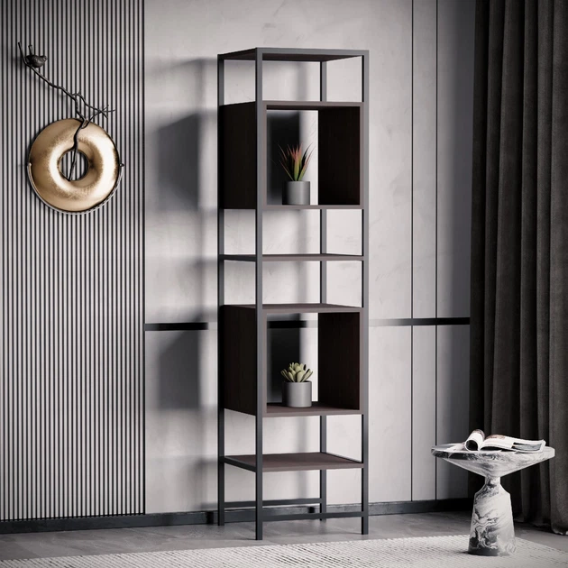 Книжковий стелаж для дому в стилі лофт з металу та ДСП 44х180,5х44 см Антрацит (N-05A)