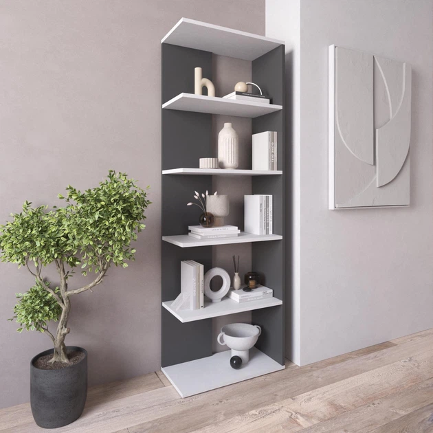 Кутовий стелаж для книг етажерка на 5 ярусів ДСП 600х1781х300 мм Антрацит/Білий (PD-6)