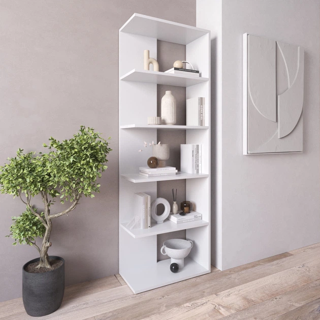 Кутовий стелаж для книг етажерка на 5 ярусів ДСП 600х1781х300 мм Біла (PD-6)