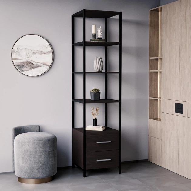 Книжковий стелаж для дому в стилі лофт з металу та ДСП 44х180,5х44 см Венге (N-04V)