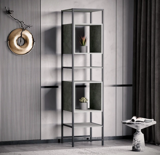Книжковий стелаж для дому в стилі лофт з металу та ДСП 44х180,5х44 см Бетон (N-05BT)