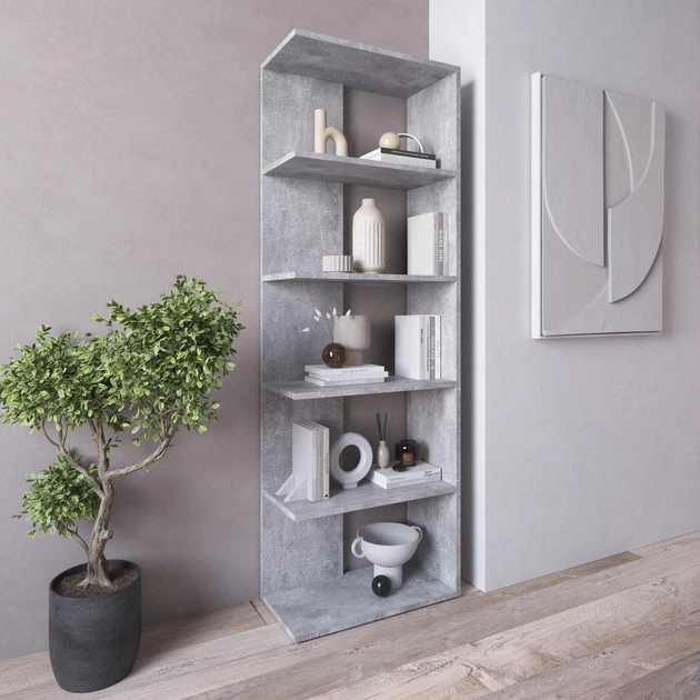 Кутовий стелаж для книг етажерка на 5 ярусів ДСП 600х1781х300 мм Бетон (PD-6)