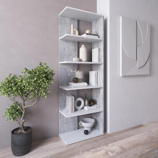 Кутовий стелаж для книг етажерка на 5 ярусів ДСП 600х1781х300 мм Бетон/Білий (PD-6)