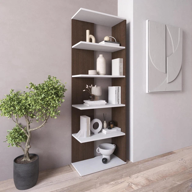Кутовий стелаж для книг етажерка на 5 ярусів ДСП 600х1781х300 мм Венге/Білий (PD-6)