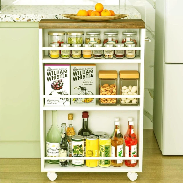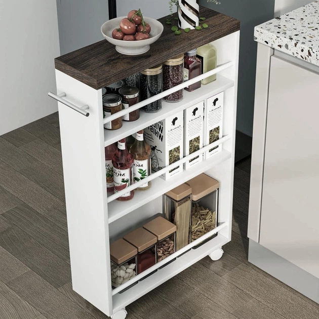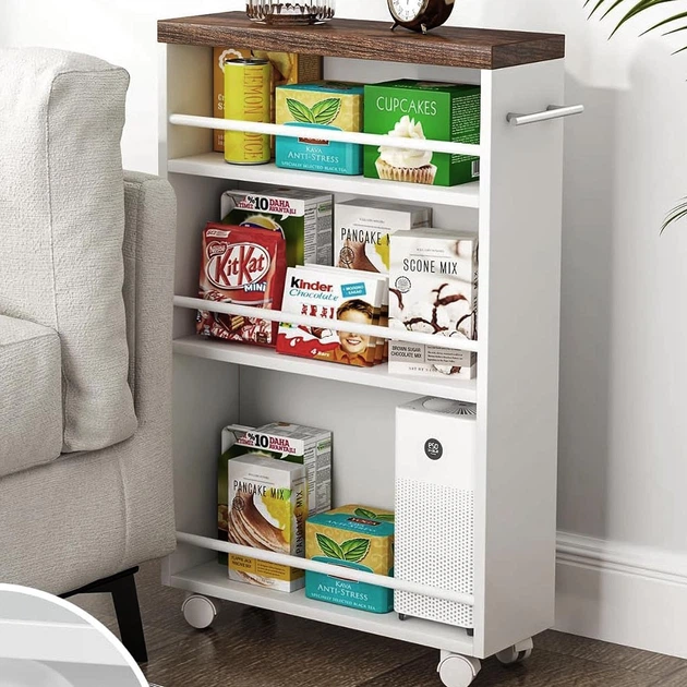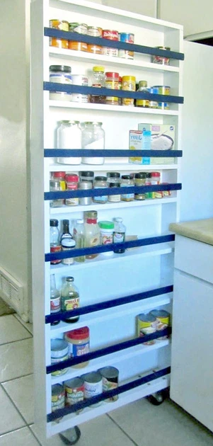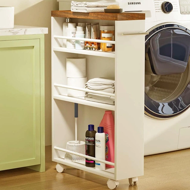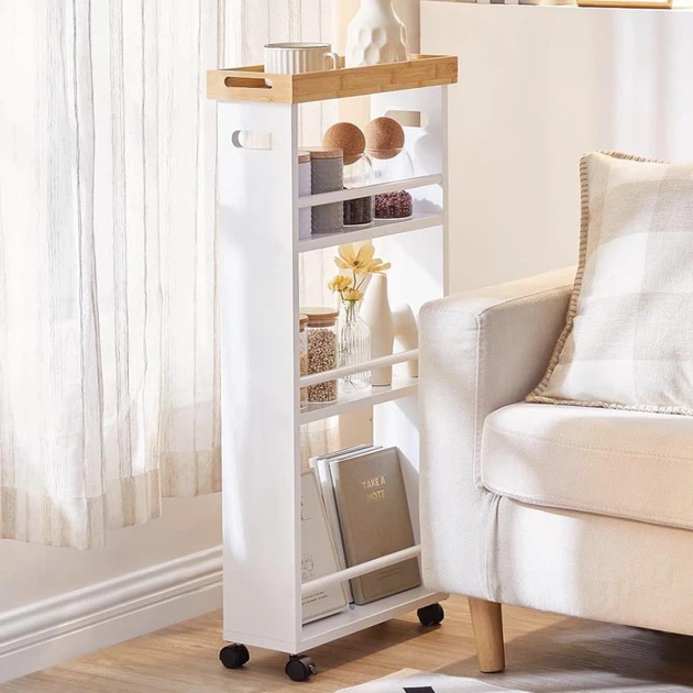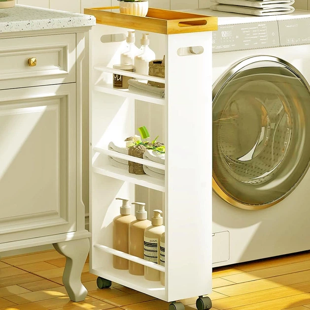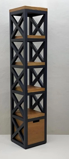 Вузький стелаж з дерев’яними полицями та ящиком 0070505