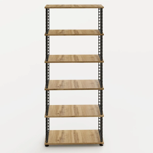 Металевий стелаж з полицями з ЛДСП для дому та офісу «Соти M» чорний, полиці- дуб, 170х72,5х30 см