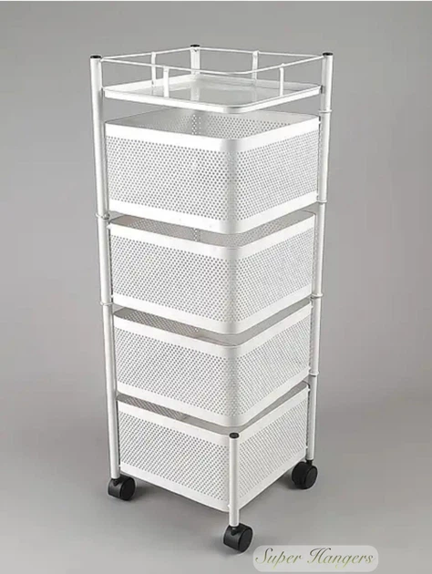Етажерка стелаж полка TRNS05 металева 280 х 280 х 790 мм на 5 полиць на коліщатках колір білий