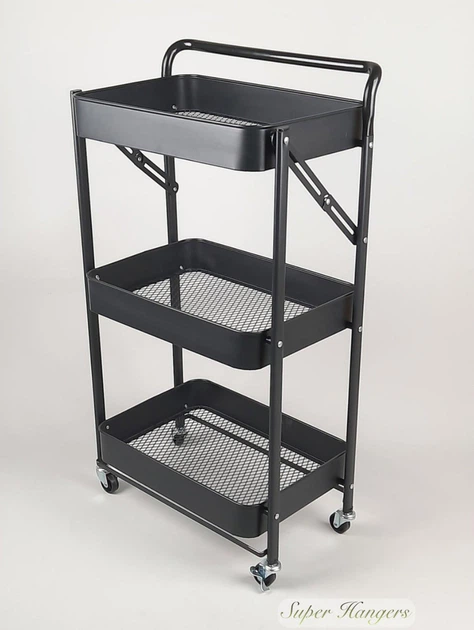Етажерка стелаж полка SMN05 металева 760 х 450 х 295 мм на 3 полиці на коліщатках колір чорний 421