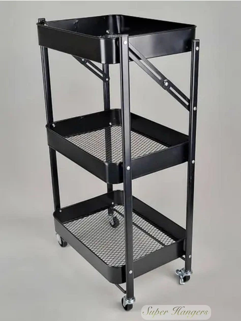 Етажерка стелаж полка SMN04 металева на 3 полиці на коліщатках колір чорний 1358