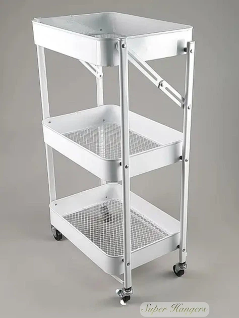 Етажерка стелаж полка SWN04 металева на 3 полиці на коліщатках колір білий 1358