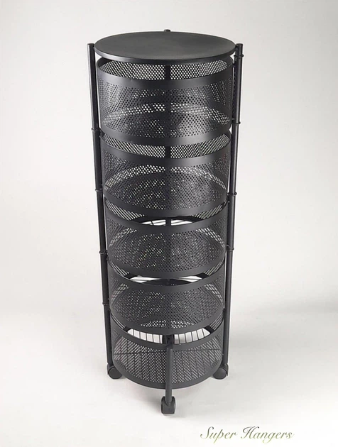 Етажерка стелаж полка TRNS05 металева 280 х 280 х 790 мм на 5 полиць на коліщатках колір чорний