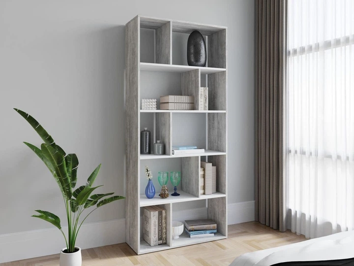 Стелаж-перегородка DrevoGoods вузький, посилений, підлоговий / пристінний для дому та офісу на 6 полиць, 10 комірок для збер