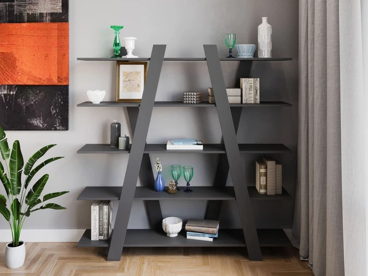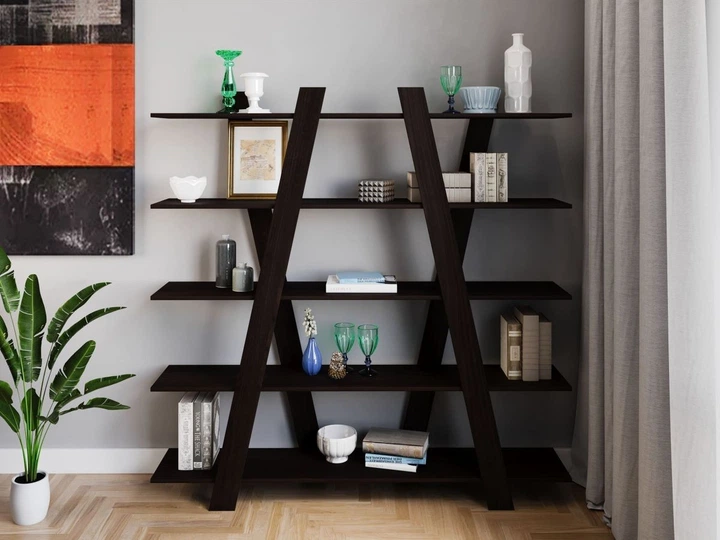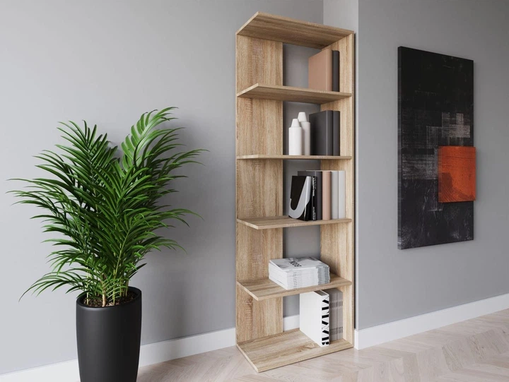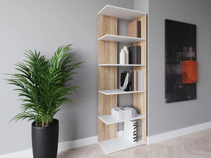 Стелаж-перегородка DrevoGoods вузький, посилений, підлоговий / пристінний для дому та офісу на 5 полиць для зберігання книг