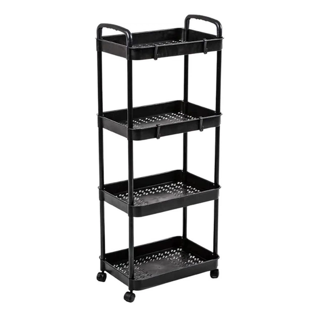 Етажерка на колесах, стелаж для зберігання, чорний, 4 полиці, для ванної, кухні, 32х20х80см