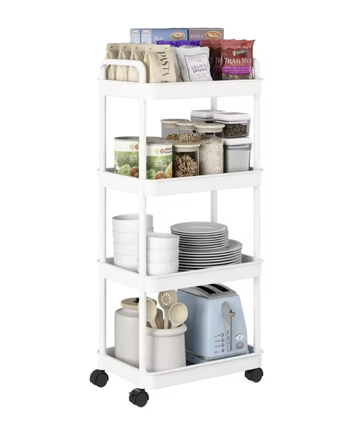 Полиця на колесах із пластику 4 яруса Підлоговий візок для кухні, ванної кімнати