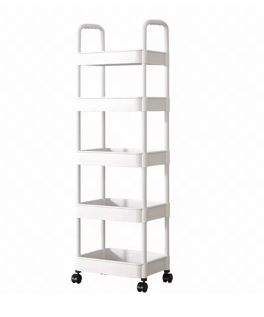 Етажерка на колесах, стелаж для зберігання, білий, 5 полиць, для ванної, кухні, 32х20х100см