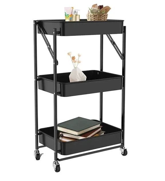 Етажерка на колесах Modern Home 3 яруса 45 х 29 х 85 см (WW01358-BL) Чорна