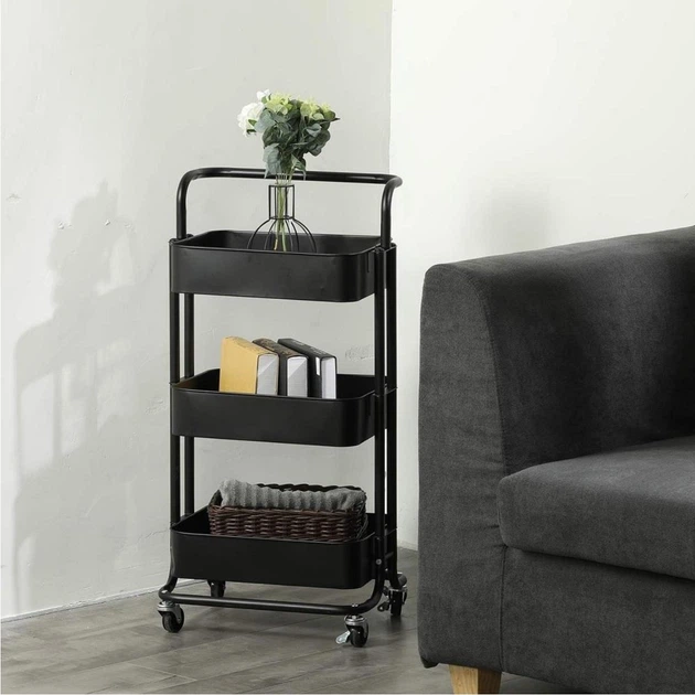 Етажерка на колесах Modern Home "Comfort" 3 яруси 87 х 36 х 43 см (WW01355-BL) Чорна