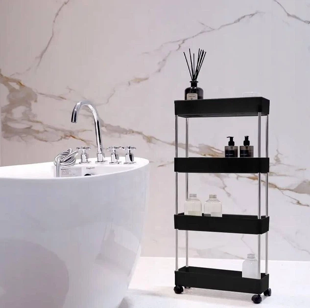 Етажерка на колесах для дому Полиця для зберігання 4 рівня Чорний колір