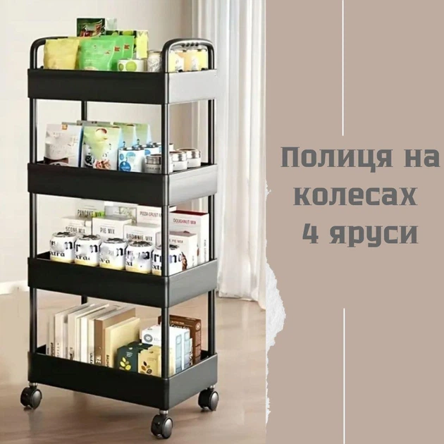 Полиця на колесиках пластмасова універсальна 4 яруса Чорний колір