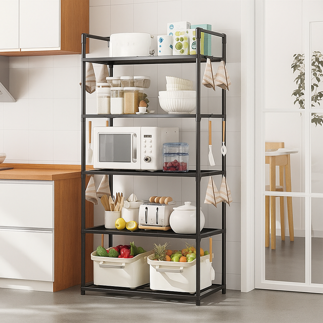 Стелаж на підлогу етажерка 5 полиць (147х50.5x27) XL-1330, Чорний / Етажерка у ванну / Стелаж на кухню