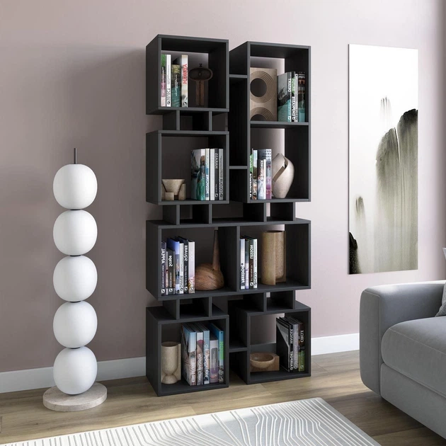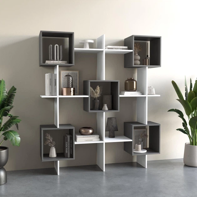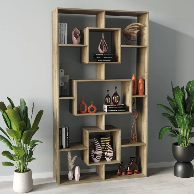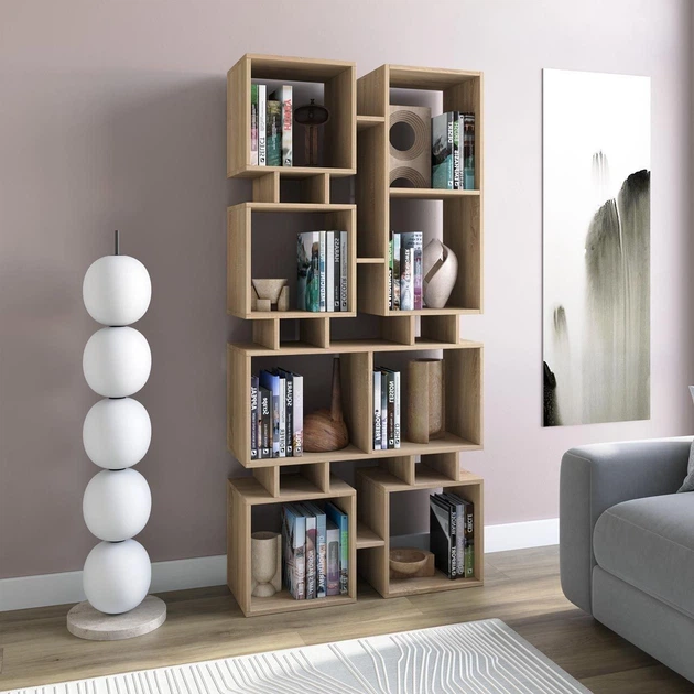 Стелаж-перегородка / книжкова полиця від виробника DrevoGoods дерев'яний з ламінованого ДСП для дому та офісу на 16 комірок