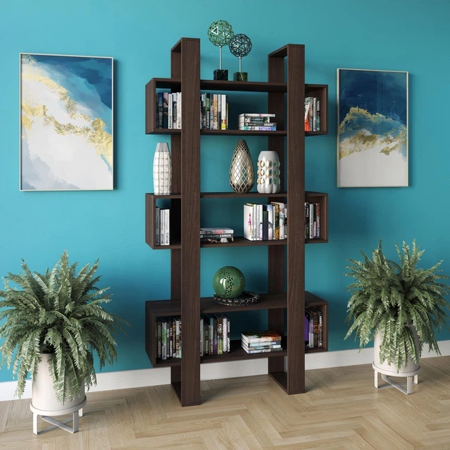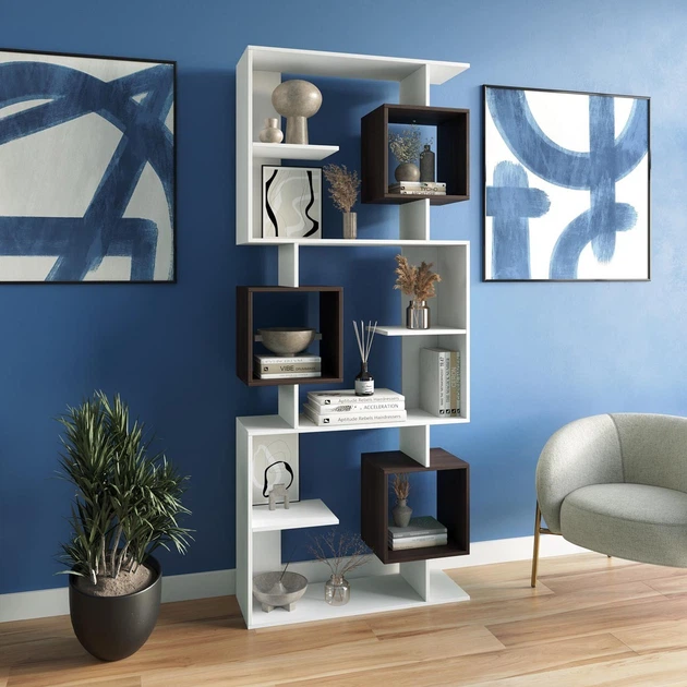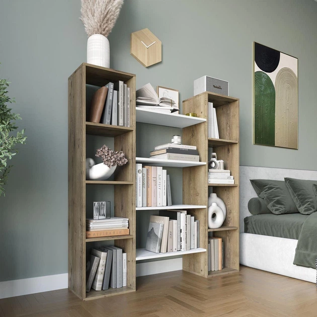 Стелаж-перегородка / книжкова полиця від виробника DrevoGoods дерев'яний з ламінованого ДСП для дому та офісу на 16 комірок