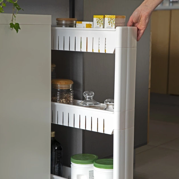 Етажерка 3-х-рівнева вузька на колесах MVM FH-20 WHITE пластикова біла
