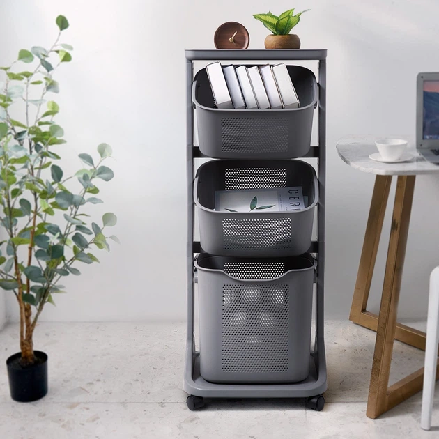 Етажерка з кошиками на колесах MVM FH-21 GRAY пластикова сіра
