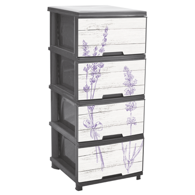 Комод на 4 шухляди 46*39*96см пластик з малюнком Лаванда сірий Алеана