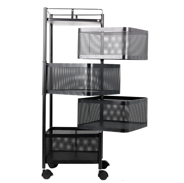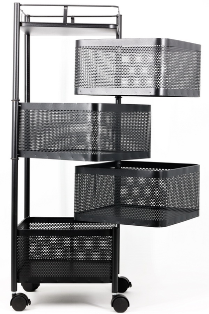 Полиця товарна металева розсувна на колесах 4 яруси A-Plus 50113 чорна