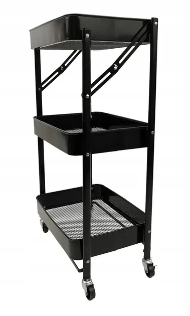 Підлогова етажерка 2011 з металу та пластику складна 77х45х30 см на колесах Чорна (127-14-16138)