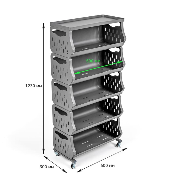 Металевий стелаж на колесах 5 ярусів з регульованими ніжками 6030123 см