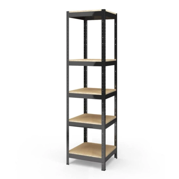 Стелаж металевий 190х30х30 см ЧОРНИЙ 5 поличок ДСП (10 мм) БОНА-ПРО