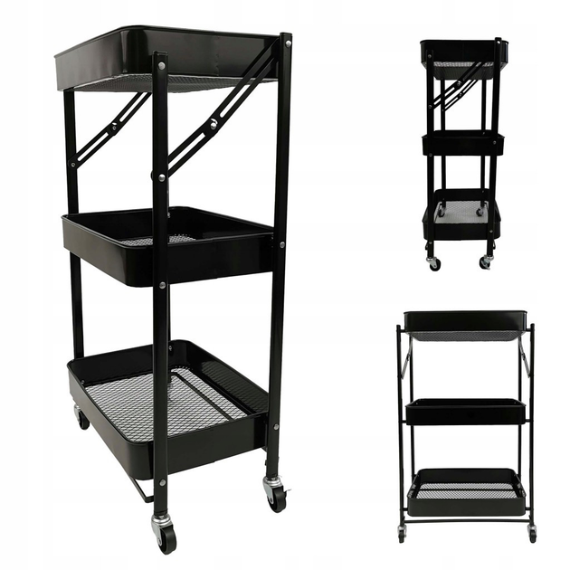 Стелаж етажерка з полицями на колесах Bonro B-074 чорний (42400119)