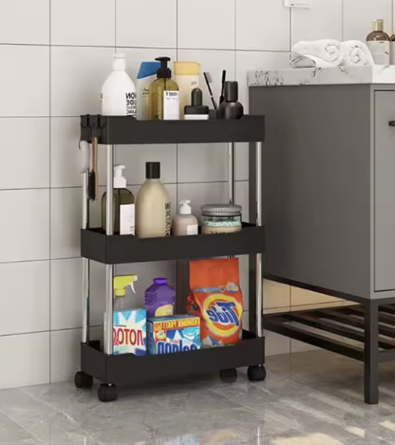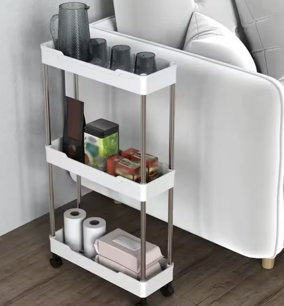 Стелаж 3-ярусний на коліщатках для зберігання інструментів, іграшок, побутових дрібниць у ванну, кухню і комору 60х30х77 см