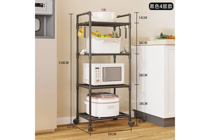 Етажерка на 4 полиці, на колесах, підлогова, чорна AND XL-1379