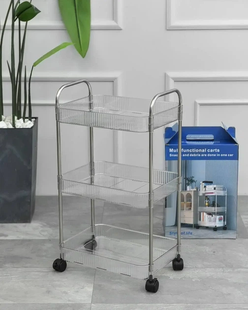 Стелаж етажерка на колесах 3 яруси мобільна підставка з полицями для дому, салону, офісу або майстерні (UP7772)