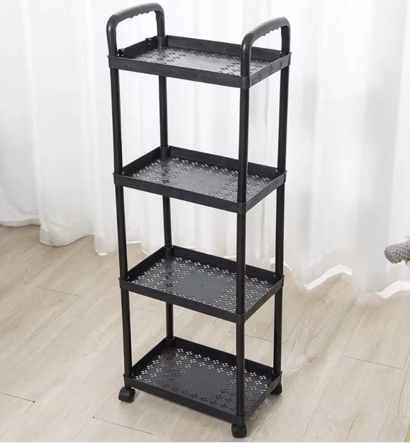 Полиця на колесах із пластику 4 яруса Підлоговий візок для кухні, ванної кімнати