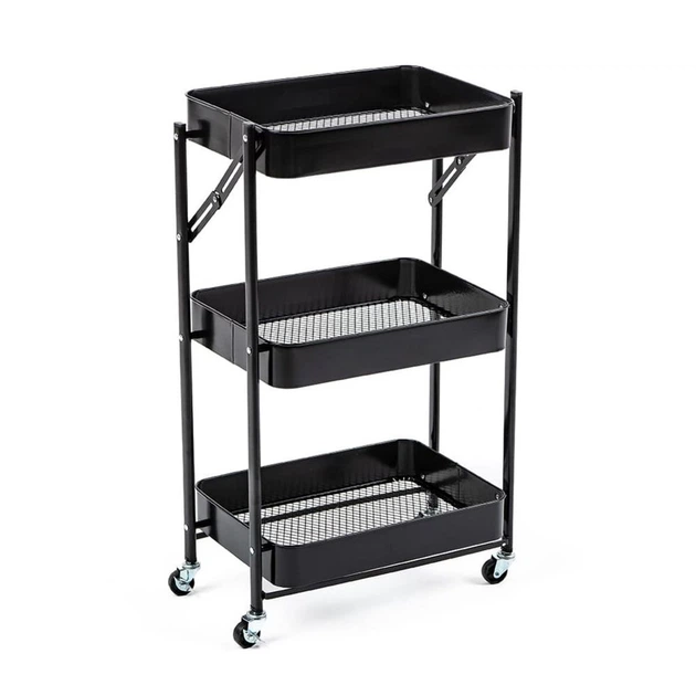 Стелаж на колесах 3-ярусний універсальний розкладний із нержавіючої сталі 897234 см, чорний SW-00002097